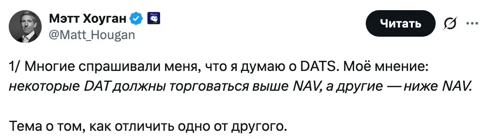«В отличие от них, казначейства, которые выбирают легкий путь, просто покупая и удерживая криптоактивы, будут торговаться с дисконтом к стоимости этих активов».