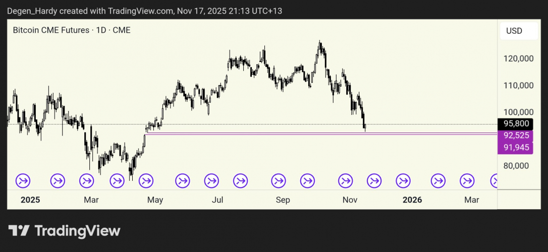Апрельский гэп остается нетронутым уже более полугода, что делает его настоящей аномалией. QCP Capital также обратила внимание на эту зону: «Область $92 000 также совпадает с незакрытым гэпом на CME, что повышает вероятность краткосрочного технического отскока при тестировании этого уровня.».