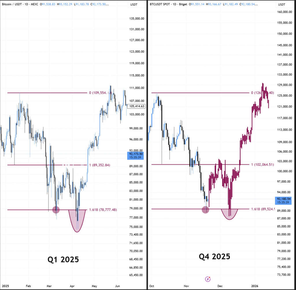 Трейдер Skew видит интересное сходство с предыдущим циклом и отмечает важность области $86 000-85 000.