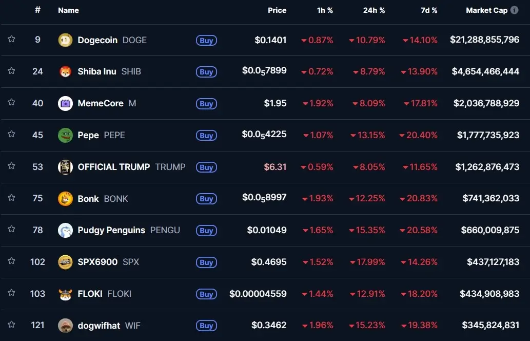 Мемкоины достигли самой низкой стоимости в 2025 году в пятницу, упав до совокупной рыночной капитализации в $39,4 млрд по данным агрегатора CoinMarketCap.