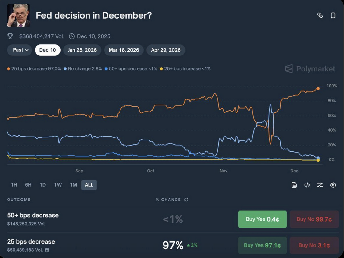 Аналитики Santiment зафиксировали подавляющий оптимизм прогнозистов на Polymarket в часы перед заседанием.