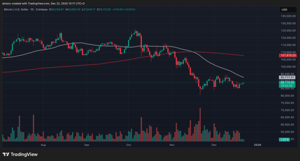 Трейдеры биткоина разделились на два лагеря: одни готовятся к падению до $70 000, другие верят в отскок к $150 000. Главная криптовалюта находится в коридоре $5 000 уже восьмой день подряд, и торговое сообщество все чаще предсказывает выход из диапазона.