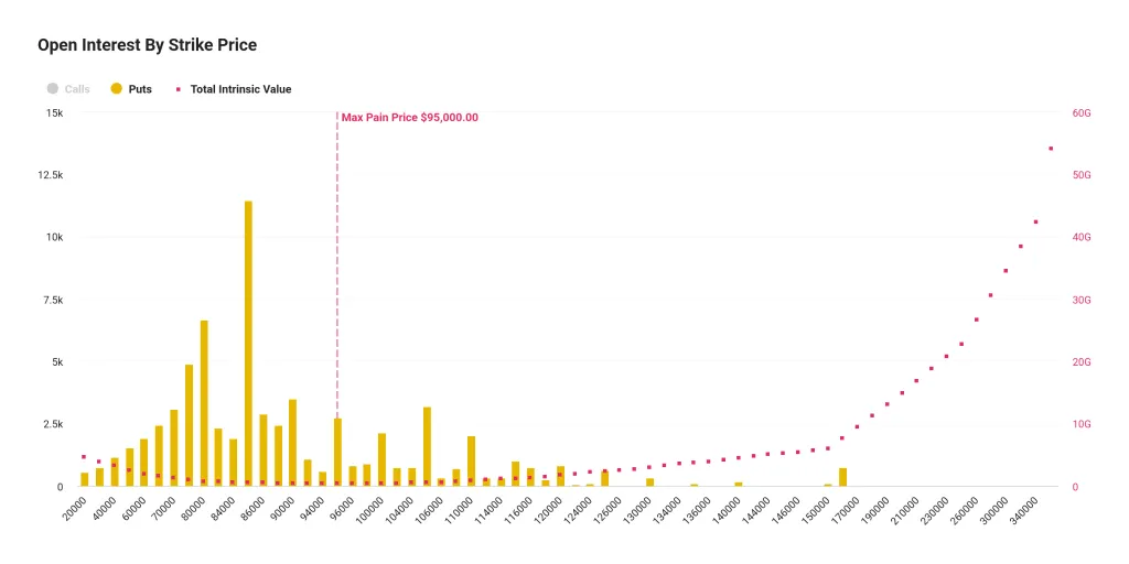 Максимальная «точка боли» находится на отметке $95 000 — уровень, при котором держатели понесут наибольшие убытки.
