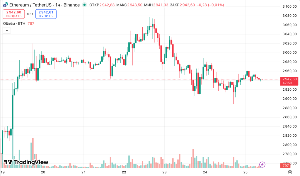 Здесь общий баланс сил также смещен в пользу продавцов — пока цена Ethereum остается ниже $3200. На момент написания монета торгуется около $2900.