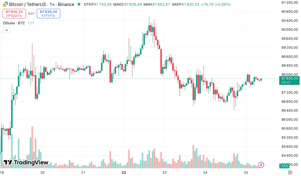 Пока курс находится ниже $94 000, преимущество остается на стороне продавцов. На момент написания актив торгуется около $87 800.