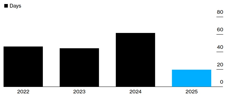 Аналитики Wintermute в своем отчете по внебиржевой торговле зафиксировали, что если раньше памп средней руки мог длиться от 40 до 60 дней, то в 2025 году медианная продолжительность ралли сдулась до 20 дней.