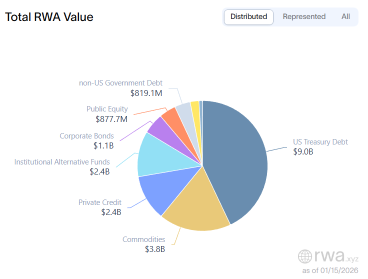 Общая токенизированная стоимость RWA по активам. Источник: RWA.xyz