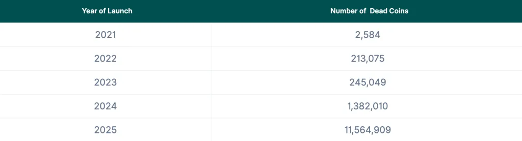 INSIGHT: 11.6 million crypto tokens failed in 2025 alone ☠️