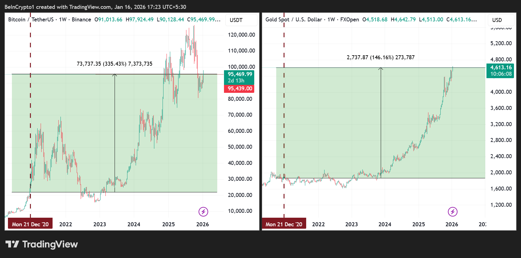 Позже доля биткоина выросла до 10% — это случилось в 2021 году. С момента первой покупки биткоин подорожал примерно на 325%, тогда как золото показало рост на 145%. Однако теперь, по его словам, результаты уже не имеют значения.