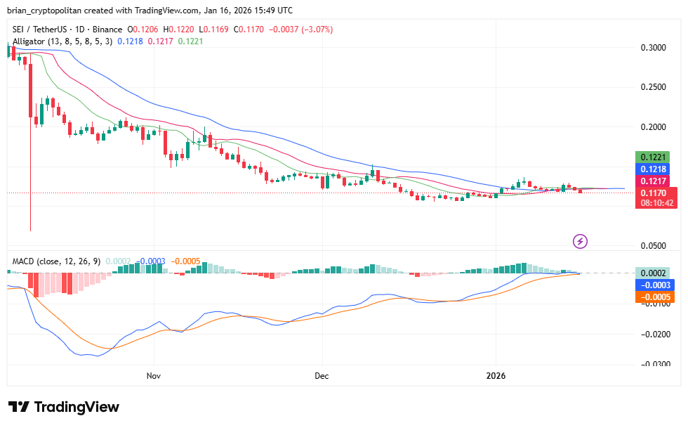 На дневном графике Solana торгировала внутри нисходящего клиновидного паттерна с сентябрьского максимума около $250. Структура указывала на потенциальное бычье разрешение, но эта теза требовала держаться выше кластера EMA.