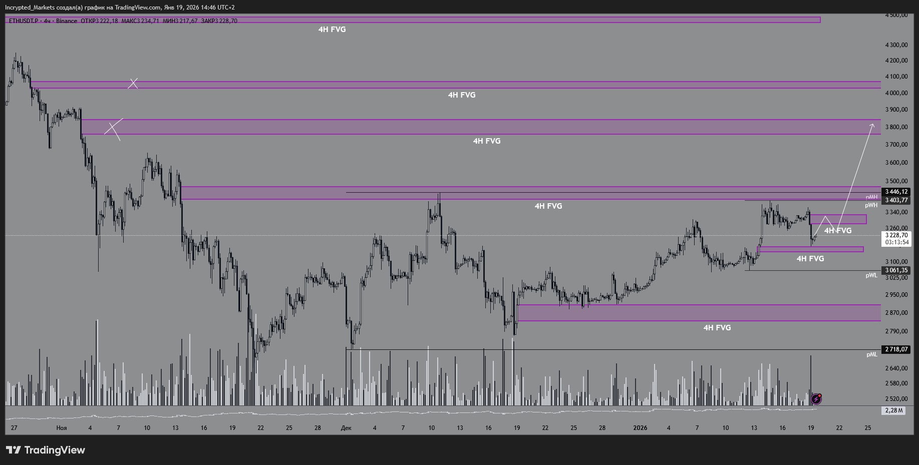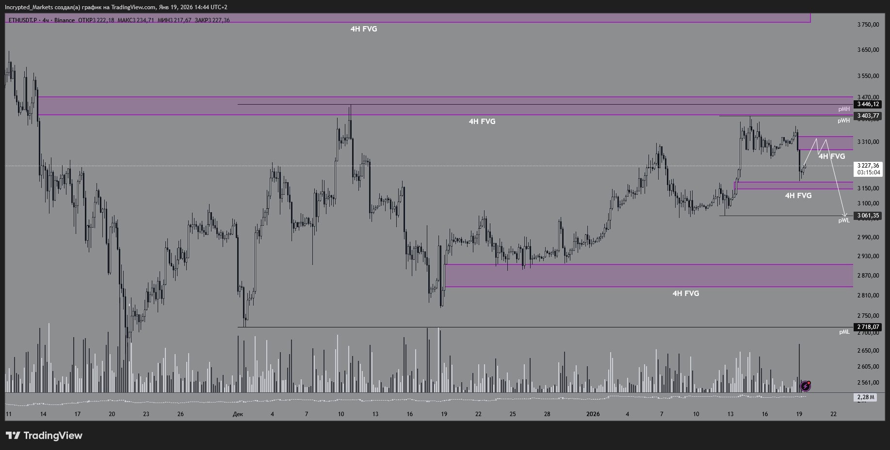 Если снимем ликвидность в дисбалансе, дальше логичный магнит — $3100, затем лои прошлой недели $3061 и психологические $3000. Там и станет ясно: держат ли базу или «пол под ногами» уезжает.