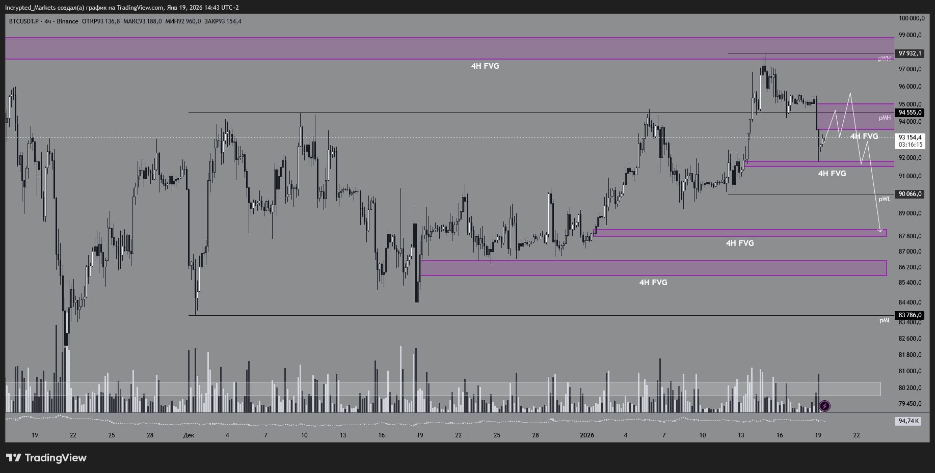 Снизу при этом остаются «магниты» на добор ликвидности: pWL ~98,672, ниже — pML ~97,749 + нижние 4H FVG.