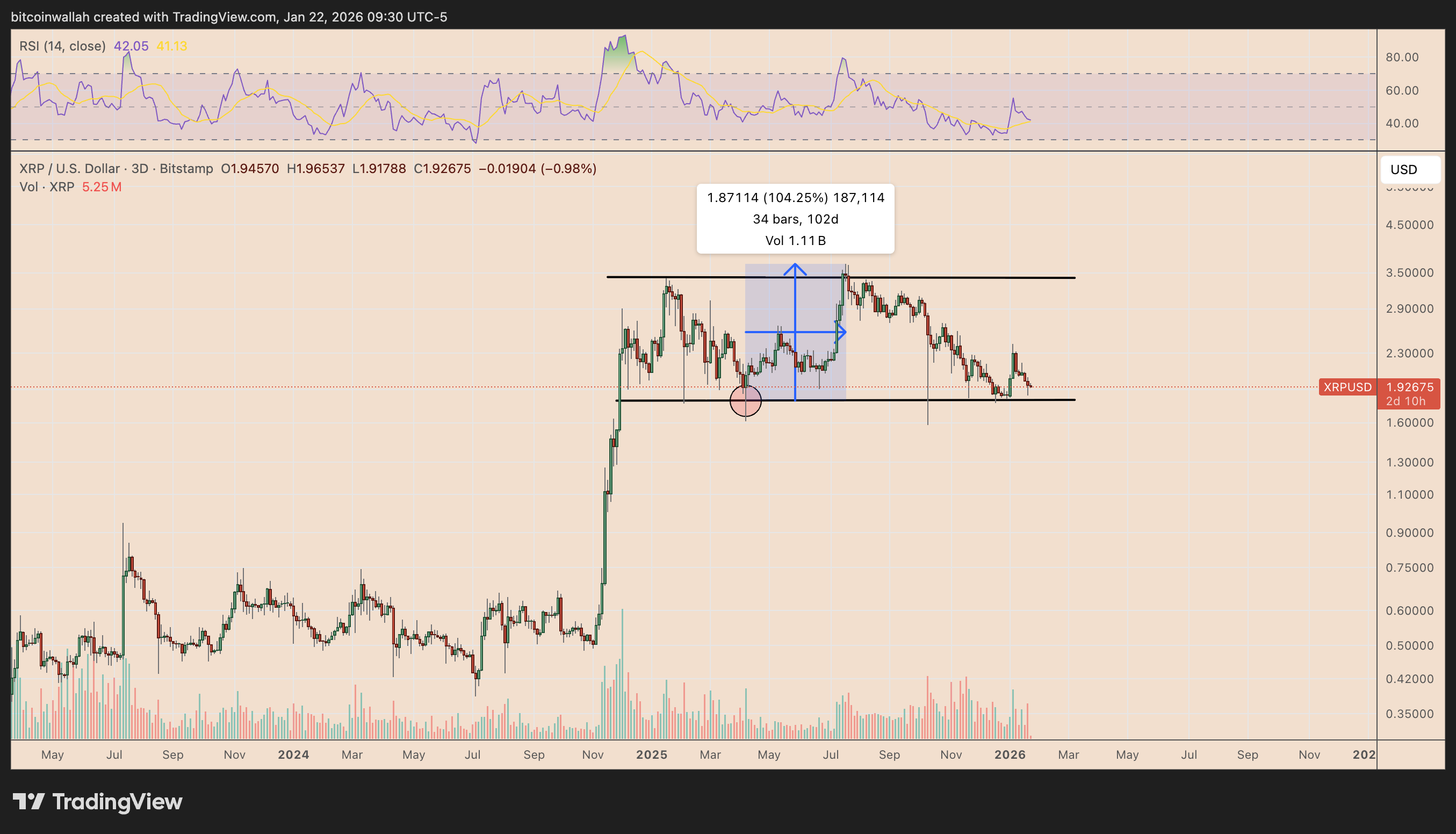 В январе курс XRP немного отскочил после тестирования нижней линии годового бокового канала в коридоре $1,80-2.
