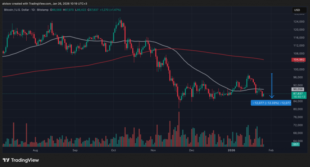 В воскресенье 25 января биткоин протестировал уровень $86 000 на бирже Bitstamp. На этой неделе американскому правительству вновь грозит шатдаун, Федеральная резервная система примет решение по процентным ставкам, при этом Трамп продолжает размахивать тарифной дубинкой в сторону Канады.