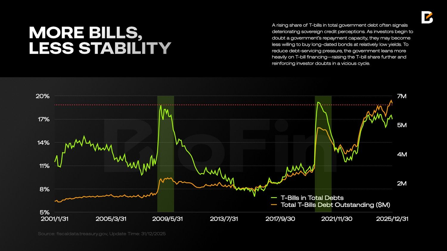 Эта тенденция не является безобидной. Рост доли казначейских векселей в структуре государственного долга часто сигнализирует об ухудшении восприятия суверенного кредитного качества. Когда инвесторы начинают сомневаться в способности государства обслуживать долг, они становятся менее готовыми покупать долгосрочные облигации по относительно низкой доходности.