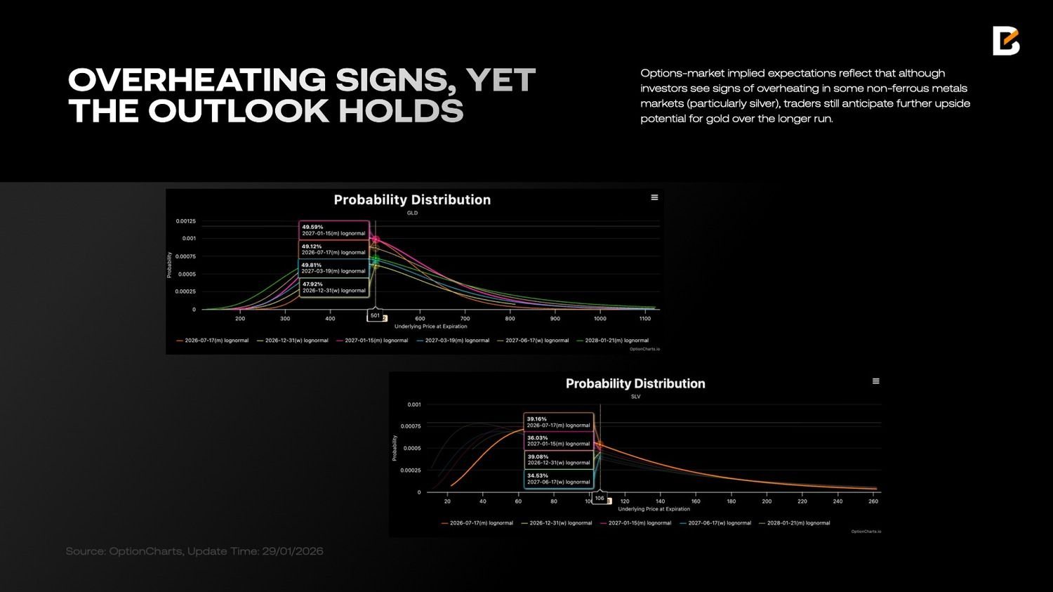 Структурный рост спроса на критические минералы в сочетании с долгосрочными ограничениями предложения делает сырьевые рынки активами со стороны предложения, а не простым отражением традиционного делового цикла. Это отражается и в ожиданиях, заложенных в опционах: несмотря на признаки перегрева на отдельных рынках цветных металлов, особенно серебра, инвесторы по-прежнему закладывают потенциал роста золота в более долгосрочной перспективе.