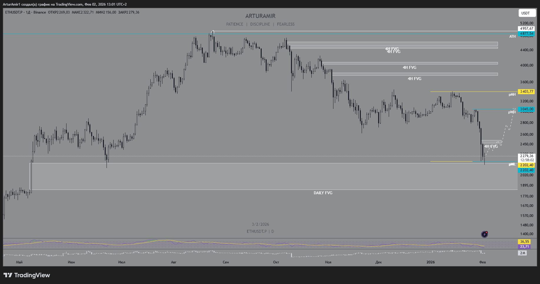 Идея: заманить в лонги, собрать ликвидность и продолжить коррекцию до $2000.