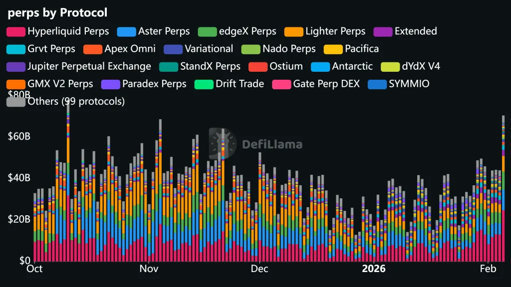5 февраля суточный объем торгов на DEX достиг $70 млрд. Это второй по величине показатель за всю историю наблюдений, согласно DeFiLlama.