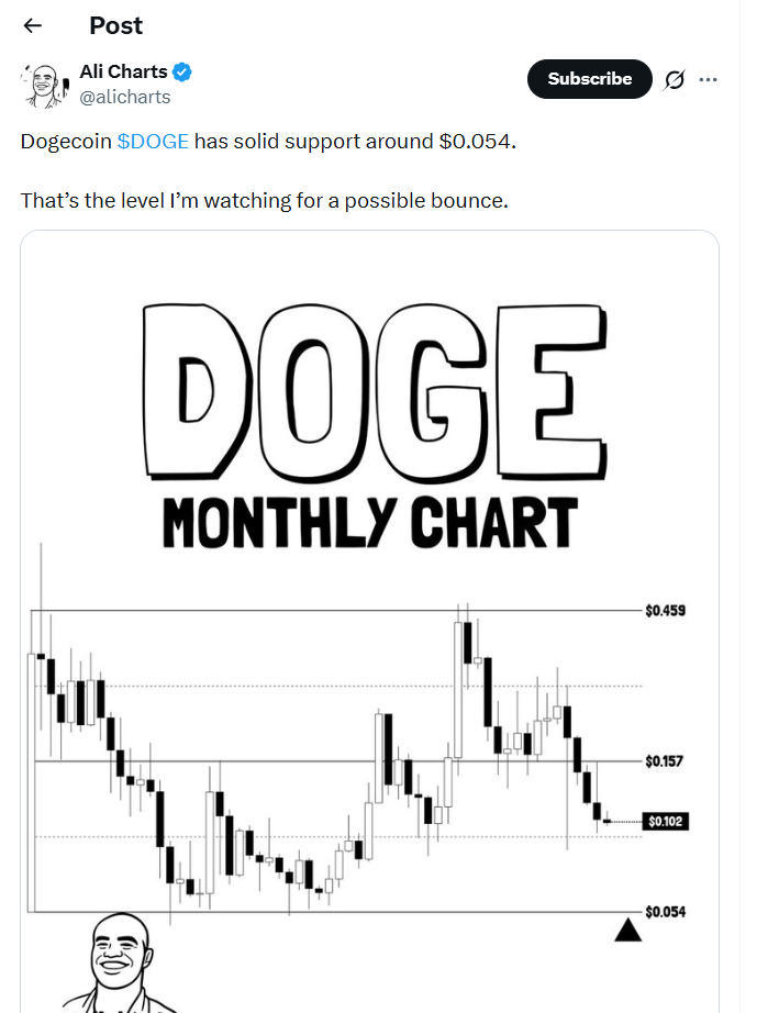 С другой стороны, $0.112–$0.110 остаётся непосредственной зоной поддержки, где покупатели пытаются стабилизировать цену. Чистая потеря этой зоны увеличит риск снижения до $0.105, за которым следует психологический регион $0.100–$0.098. Более широкая техническая картина говорит о том, что $DOGE консолидируется внутри медвежьей структуры, а не формирует базу для разворота.