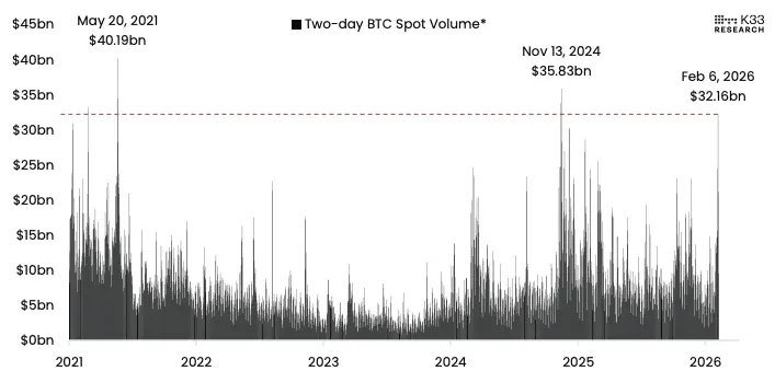 Падение биткоина к отметке $60 000 могло стать локальным дном. Аналитики K33 Research зафиксировали признаки капитуляции инвесторов одновременно на спотовом рынке, в секторе ETF и деривативах.