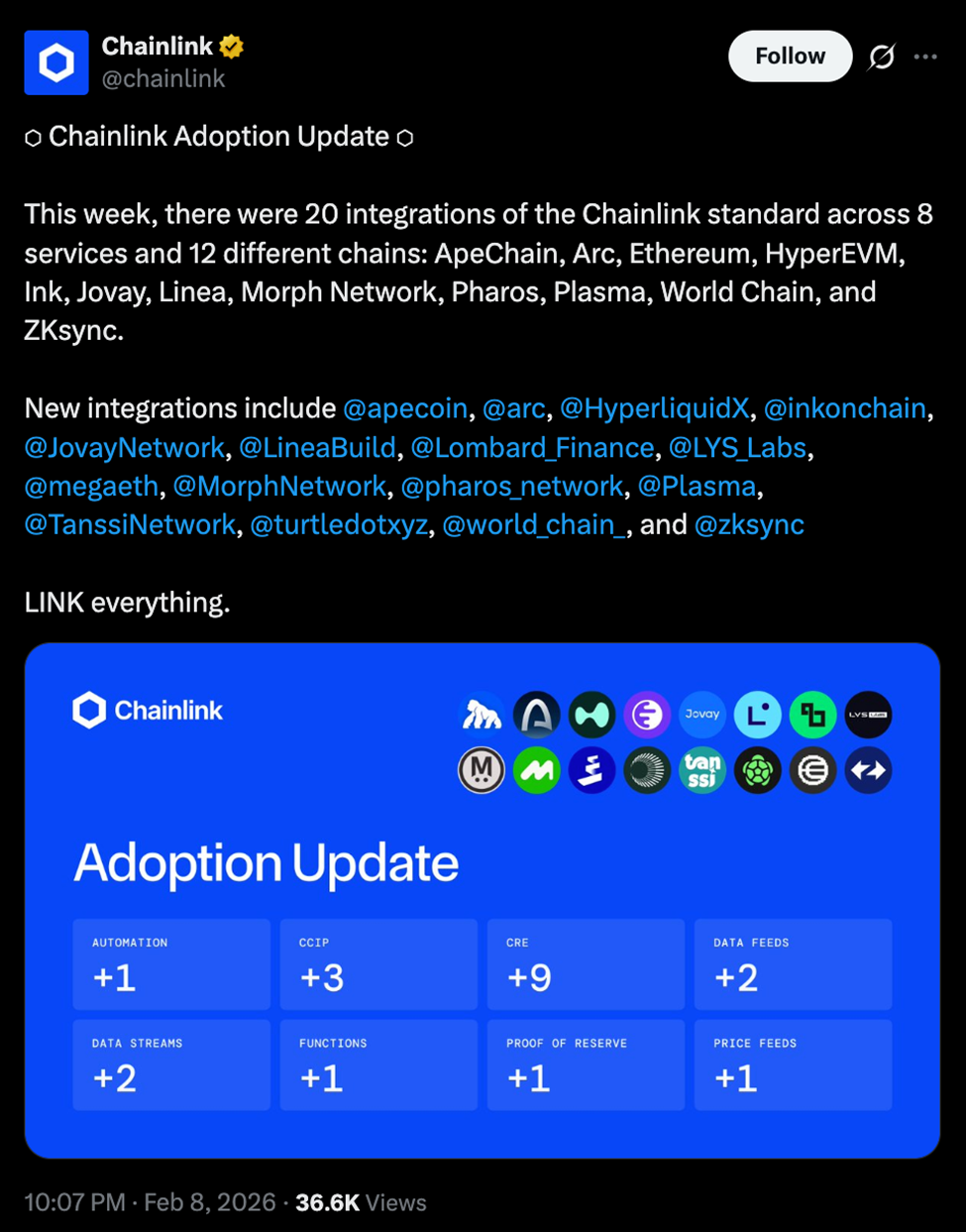Связано: Прогноз цен на Chainlink: LINK близок к минимуму цикла, несмотря на растущую интеграцию DeFi в реальном мире