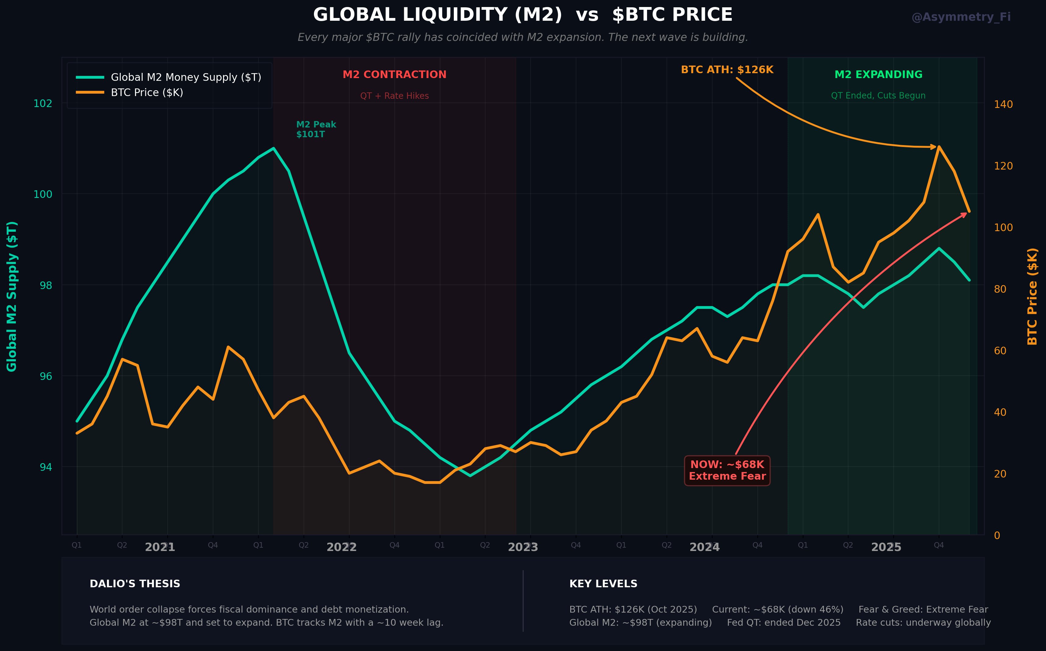 Бывший управляющий фондом Asymmetry отметил, что каждое крупное ралли первой криптовалюты совпадало с расширением M2 и что «следующая волна уже находится в стадии формирования».