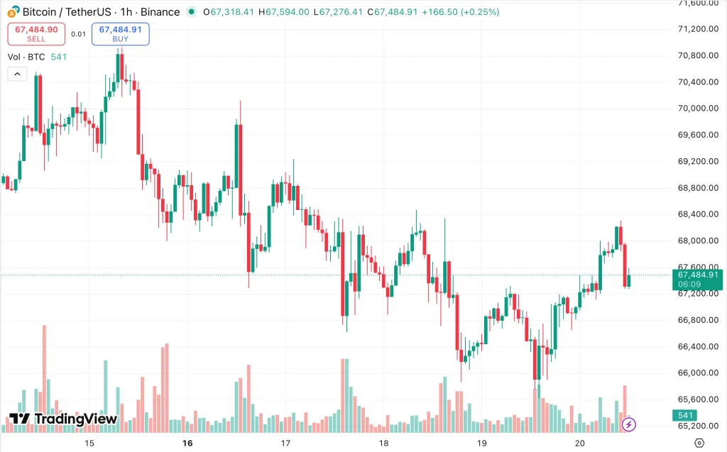 На момент написания первая криптовалюта торгуется около $67 400 — почти на 50% ниже исторического максимума вблизи $126 000.