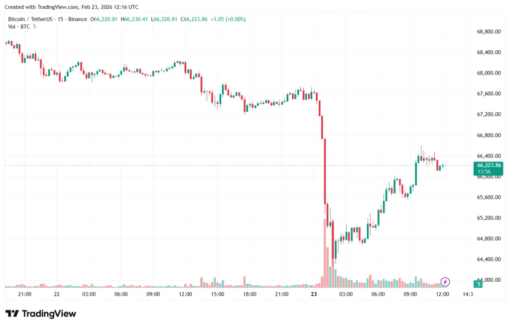 23 февраля цена биткоина опускалась ниже $65 000. На момент написания актив торгуется по $66 223 (-2,6% за сутки).