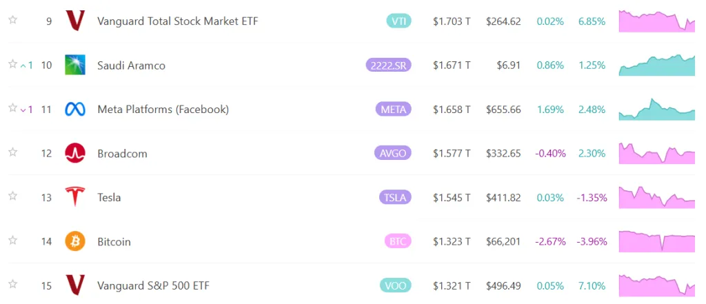 Рыночная капитализация биткоина упала до $1,32 трлн. Актив опустился на 14 строчку глобального рейтинга, включающего крупнейшие корпорации.