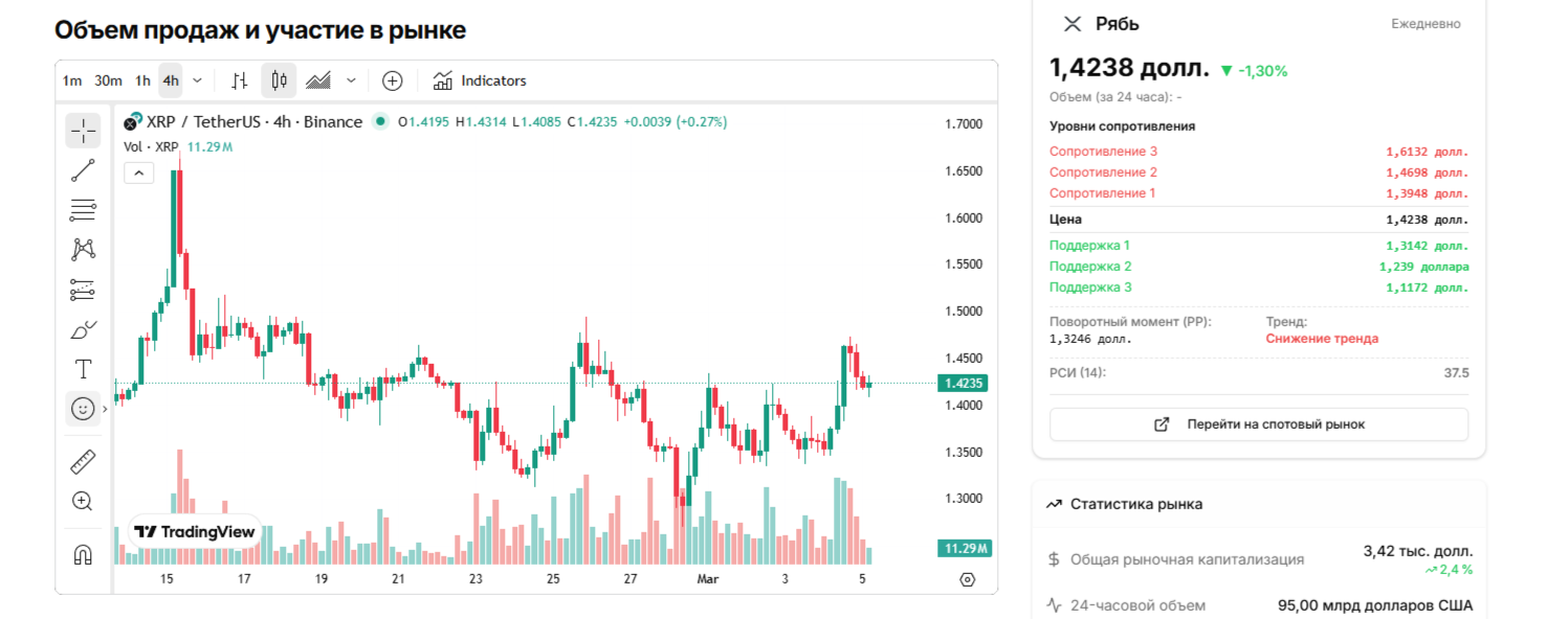Техническая картина $XRP на 5 марта 2026 года показывает признаки повышенной активности рынка и возможного накопления актива крупными игроками.