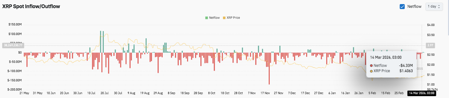 Уровни снижения: $1.43 служит непосредственной зоной поддержки, удерживающей текущий диапазон. Если продавцы опустятся ниже этого уровня, $XRP может опуститься в более сильный регион спроса между $1.30 и $1.35. Дальнейшее ослабление может выявить более глубокую структурную поддержку между $1.12 и $1.20.