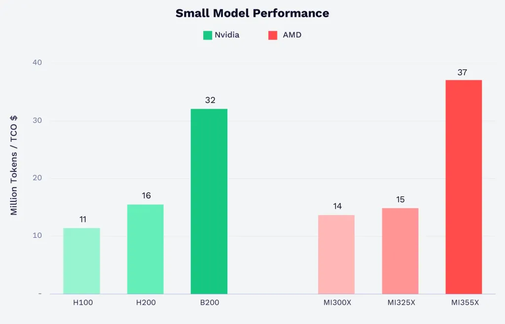 Рост спроса обострил конкуренцию между производителями оборудования. Компании AMD удалось догнать Nvidia по показателю совокупной стоимости владения (TCO) при инференсе небольших моделей. Однако в сегменте тяжелых моделей Nvidia удерживает лидерство по производительности благодаря архитектуре Grace Blackwell.