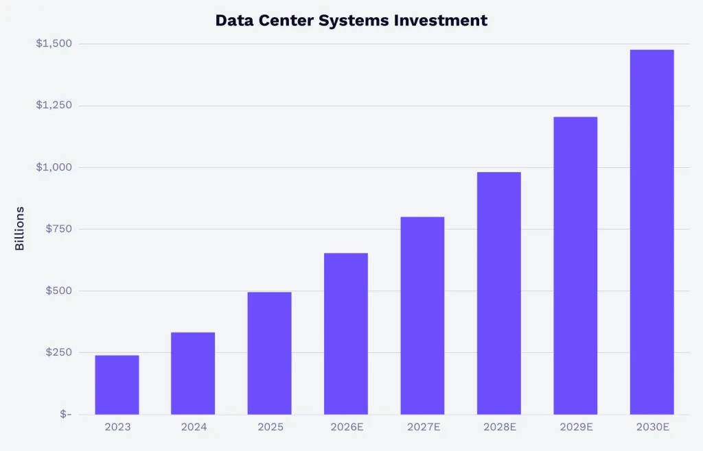 По расчетам ARK, к 2030 году ежегодные инвестиции в ИИ-инфраструктуру достигнут $1,5 трлн — трехкратный рост за пять лет. Доля специализированных ASIC в структуре вычислительных мощностей вырастет до трети рынка.