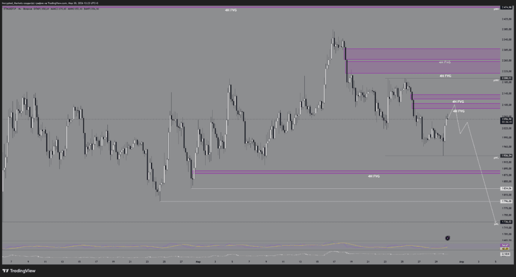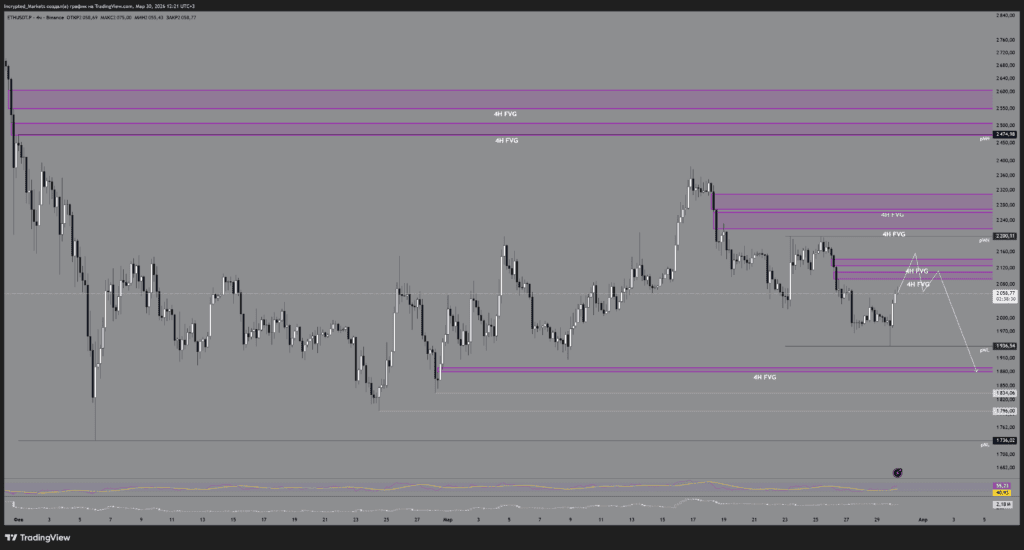 Логика: сверху есть отличные «полки» для снятия. Мы можем даже не дойти до обновления максимумов прошлой недели (pWH), получить локальную коррекцию, снять лои и пойти на заполнение FVG в районе $1900. Для конца месяца такой маневр выглядит вполне закономерным.