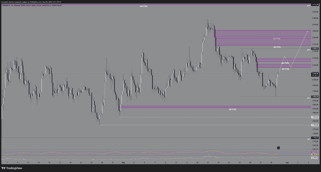 Логика: инструмент спускается, собирает стопы лонгистов, после чего получает мощный реверс, продолжает восстановление и поднимается выше $2000 для теста верхних пулов. Классическая манипуляция маркетмейкера.