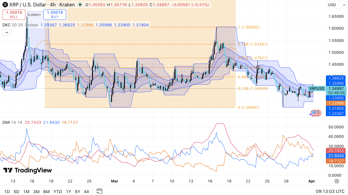 Прогноз $XRP зависит от реакции цены на зону сжатия $1.30–$1.40. Этот район представляет собой ключевое поле битвы между покупателями и продавцами. Кроме того, технические индикаторы показывают слабый, но стабилизирующий импульс, что совпадает с фазой нейтрального рынка.