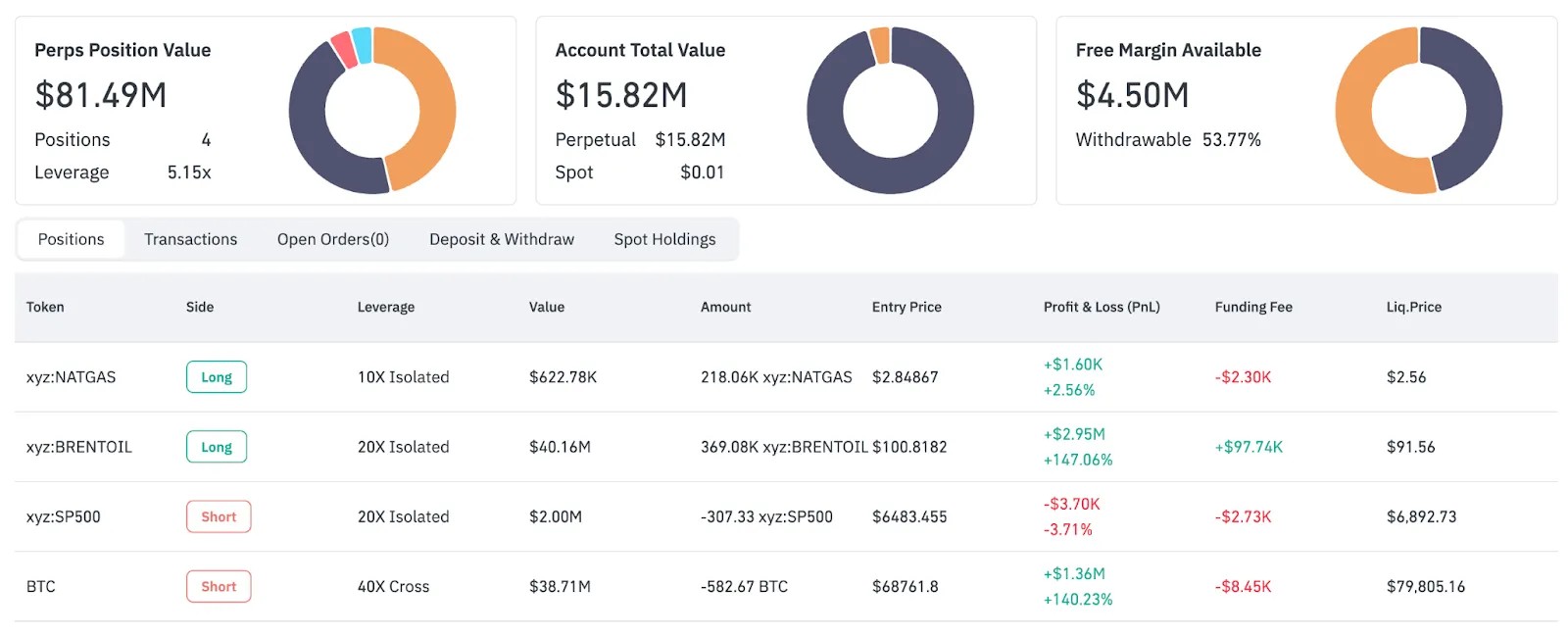 Резкий рост фьючерсов на нефть марки Brent на бирже Hyperliquid спровоцировал принудительные закрытия позиций на $46,6 млн. Крупнейшая единичная ликвидация привела к потере $17,18 млн.
