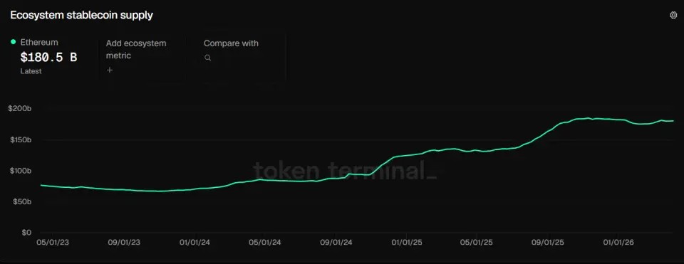 Поддержку эфиру оказывает объем стейблкоинов в блокчейне Эфириума — около исторического максимума. В денежном выражении объем составил $180,5 млрд. По данным самого Эфириума, его доля на рынке стейблкоинов — 60%. Они выступают краеугольным камнем децентрализованных финансов (DeFi). Рост предложения стейблкоинов, вполне вероятно, должен перерасти в увеличение активности в сети Эфириума.