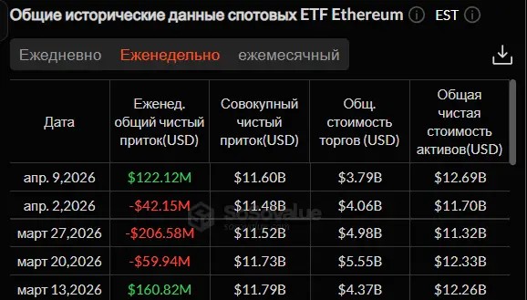 Спотовые ETF на эфир прервали трехнедельную полосу оттока денежных средств. На этот раз был зафиксирован приток в размере $122,12 млн. Большая часть суммы, $114,66 млн, пришлась на фонд компании BlackRock, iShares Ethereum Trust (ETHA).