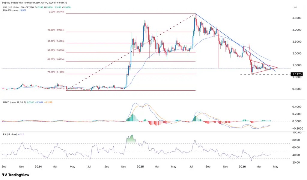 - Цена $XRP готовится к значительному росту, формируется треугольный паттерн.