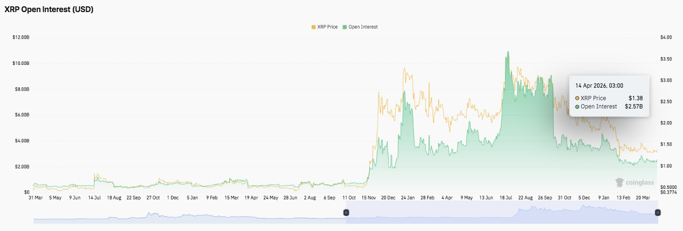 Техническая картина показывает, что $XRP сжимается в боковом диапазоне накопления после резкого медвежьего импульса. Эта структура часто предшествует росту волатильности, когда цена решительно прорывается в одном направлении после длительной нерешительности.
