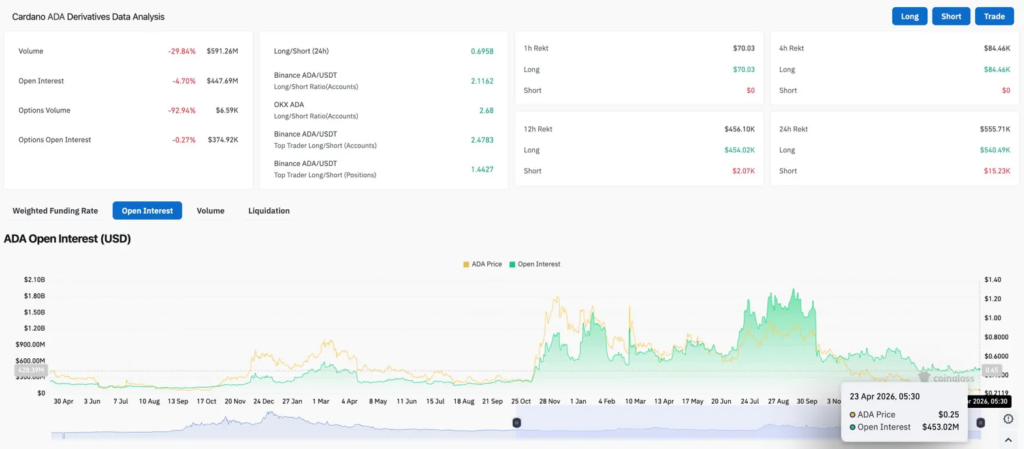 Производные $ADA: длинные позиции приносят в 35 раз больше боли, чем шорты