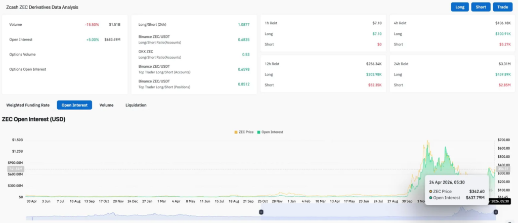 Почему открытый интерес к $ZEC растёт, даже несмотря на снижение объёмов?