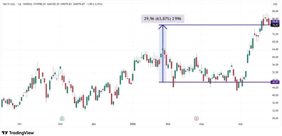 Открывает топ-10 крупнейших криптовалютных компаний Hut 8 с ее рыночной капитализацией $8,52 млрд. Компания зарабатывает на майнинге, развитии искусственного интеллекта (ИИ) и дата-центров. За апрель ценные бумаги Hut 8 выросли на 63,87%. Интерес инвесторов эти акции вызвали из-за массовой переориентации компании с добычи биткоина на ИИ. Кроме того, инвесторы проявляют интерес к Hut 8 из-за ее партнерства с Google, о котором было объявлено в конце 2025 года — ради развития дата-центров в кампусе River Bend. Дополнительную поддержку Hut 8 оказало ослабление напряженности на Ближнем Востоке.