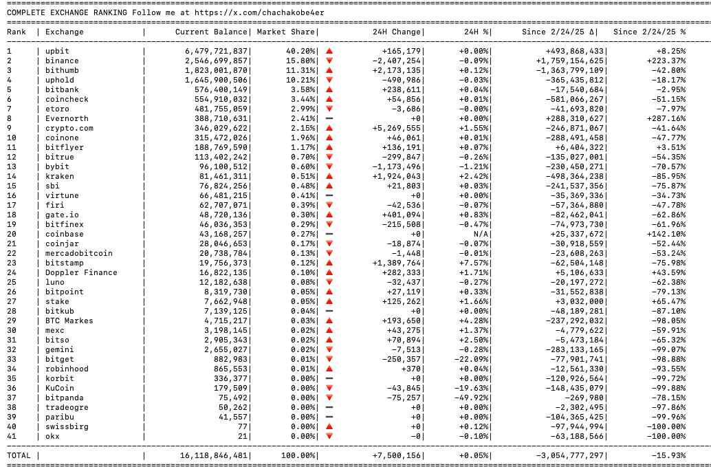 Предложение $XRP на 41 ведущей криптовалютной бирже. Источник: @Chachakobe4er