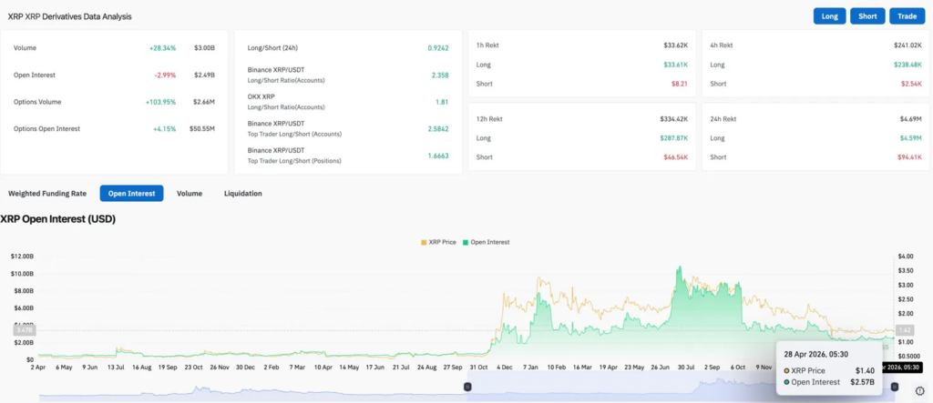 Данные по деривативам $XRP (Источник: Coinglass)