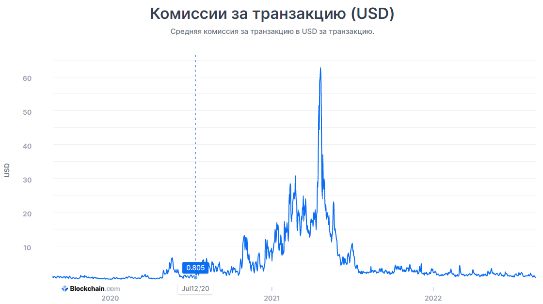 По состоянию на 22 августа стоимость средней комиссии за транзакцию в сети биткоина составила $0,825. Показатель опустился ниже доллара впервые с июля 2020 года.