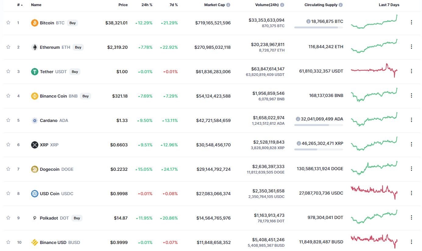 Топ-10 самых капитализированных криптовалют. Источник: CoinMarketCapAmazon – не единственная крупная компания, команда которой может организовать прием криптоплатежей. Ранее о намерении интегрировать bitcoin в свои продукты заявил основатель Twitter. Другие участники рынка, включая eBay, также проявляют интерес к рынку цифровых активов. Недавно в сети появилась информация о том, что платформа запустила продажу NFT-токенов.