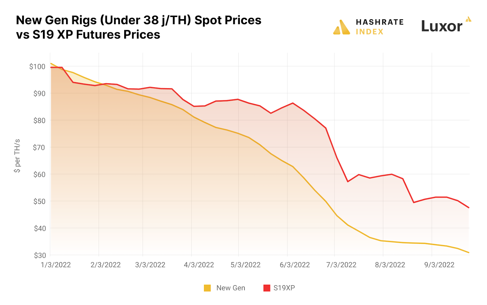 В Hashrate Index обратили внимание, что в третьем квартале начались поставки Antminer S19 XP. После первого квартала фьючерсная цена на эти устройства от Bitmain поднялась выше, чем на сравнимые установки (с энергоэффективностью выше 38 J/TH). По мнению экспертов, ситуация с премией сохранится на протяжении еще нескольких недель.