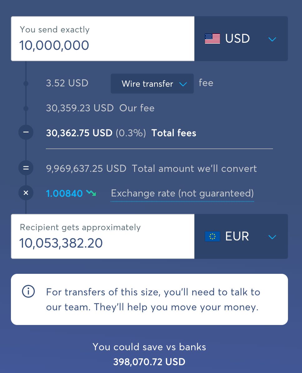 Эксперимент с отправкой огромных сумм денег с помощью устаревших финансовых инструментов. Источник: Wise